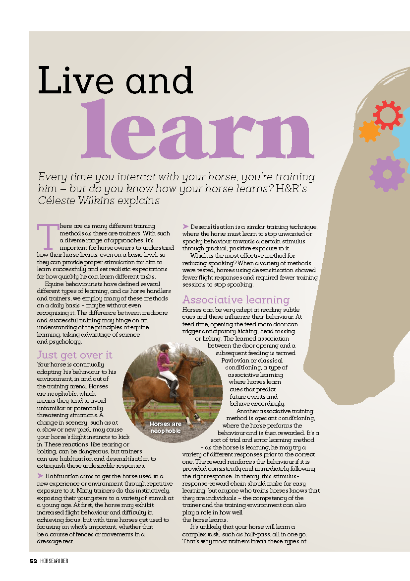 As Staff Writer at Horse&Rider magazine, I wrote and edited a variety of features each month. Topics ranged from instructional features with top riders, news snippets, equine science features and interviews. I managed the product pages, including the 10+ page bi-annual Gear Guide. I organized the Gear Guide photoshoot in conjunction with the in-house advertising department and leading equestrian brands.